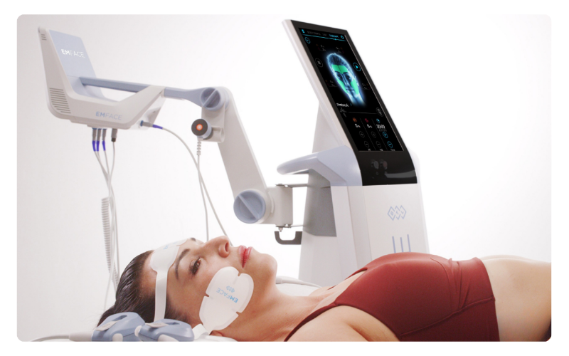 EMFACE(エムフェイス)は、HIFES(高密度焦点電磁刺激)とRF(高周波)を同時に照射し、表情筋と皮膚の双方へアプローチする画期的なたるみ治療です 。